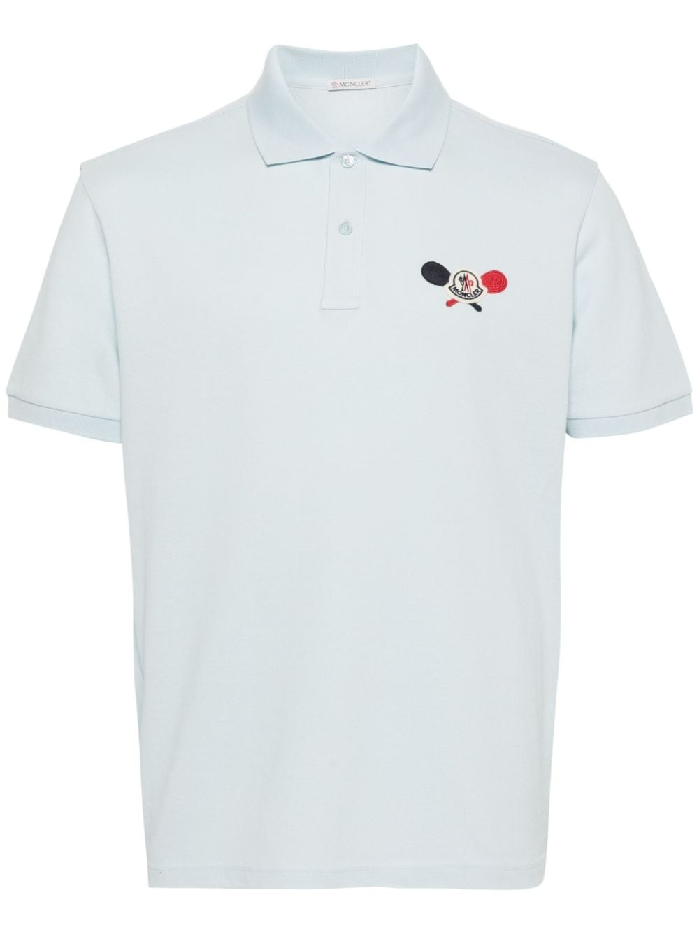 applique-logo polo shirt Highlights - Light blue - Cotton - Pique weave - Classic collar - Short sleeves - Applique logo - Straight hem - Short front button fastening Imported Composition Cotton 100% SIZE & FIT Model measurements Height 6 ft 1 in(1.86 m) Bust/Chest 37.4 in(95 cm) Hips 36.22 in(92 cm) Waist 29.52 in(75 cm) Measurement CHEST 44.88 in(114 cm) SLEEVE LENGTH 9.05 in(23 cm) FittingInformation Designed for a regular fit, this polo shirt offers a comfortable loose fit throughout the body Made from a midweight non-stretch fabric, this piece offers minimal elasticity when worn This piece fits true to size – take your usual size Washing instructions Machine Wash