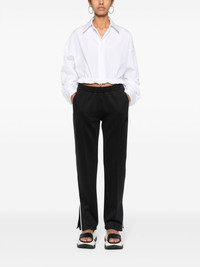 applique-logo track pants Highlights - Black - Stretch-design - Elasticated waistband - Seam detailing - Two side slash pockets - Rubberised logo detail to the front - Contrasting border to the side - Side slits - Internal drawstring fastening waist Imported Composition Polyester 87%, Elastane 13% SIZE & FIT Model measurements Height 5 ft 9 in(1.76 m) Bust/Chest 31.1 in(79 cm) Hips 36.61 in(93 cm) Waist 24.8 in(63 cm) FittingInformation Designed for a tapered fit, these trousers allow for a close fit at the waist and a loose unrestricted fit over the leg with a closer fit towards the ankle The elasticated waist allows for a comfortable fit Made from a midweight stretch fabric, this piece offers elasticity and flexibility when worn This piece fits true to size – take your usual size Washing instructions Machine Wash