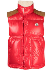 Ardeche logo-patch down-filled gilet Highlights - Red - Feather down - Glossy finish - Contrasting corduroy panels - Logo patch at the chest - Padded design - Funnel neck - Front press-stud and zip fastening - Sleeveless - Two side press-stud pouch pockets - Internal zip-fastening pocket - Side slits - Straight hem - Full lining Imported Composition Lining: Polyester 100%, Feather Down 100% Outer: Polyester 100% SIZE & FIT Model measurements Height 6 ft 1 in(1.86 m) Bust/Chest 37.4 in(95 cm) Hips 36.22 in(92 cm) Waist 29.52 in(75 cm) Measurement CHEST 48.03 in(122 cm) LENGTH 27.95 in(71 cm) WAIST 47.24 in(120 cm) FittingInformation Designed for a relaxed fit, this piece allows for comfort and movement when worn Made from a padded non-stretch fabric, giving it no natural elasticity This piece fits true to size – take your usual size Washing instructions Hand Wash