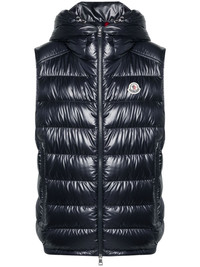 Barant padded gilet Highlights - Navy blue - Down-feather filling - Padded design - Quilted - Logo patch at the chest - Drawstring hood - Sleeveless - Two side zip-fastening pockets - Straight hem - Front two-way zip fastening Imported Composition Outer: Polyester 100%, Polyamide 100% Lining: Polyester 100%, Down 100% SIZE & FIT Model measurements Height 6 ft 2 in(1.87 m) Bust/Chest 36.41 in(92.5 cm) Hips 37 in(94 cm) Waist 29.52 in(75 cm) FittingInformation Designed for a slim fit, offering a comfortable fit that sits just away from the body Made from a padded non-stretch fabric, giving it no natural elasticity This piece fits true to size – take your usual size