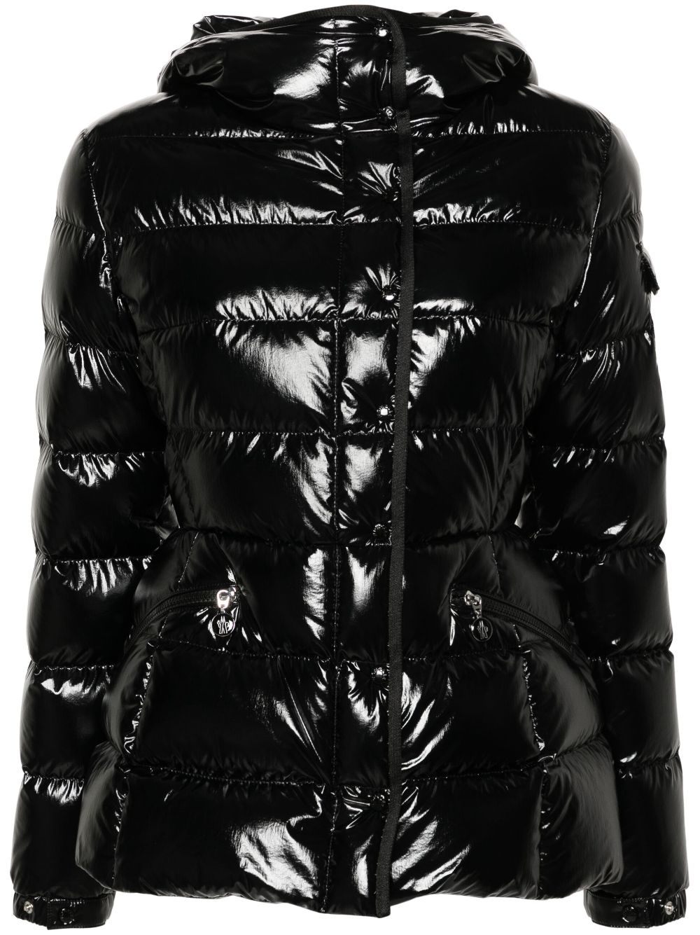 Barante padded hooded jacket Highlights - Black - Glossy finish - Applique logo - Padded design - Classic hood - Long sleeves - Sleeve flap pocket - Elasticated cuffs - Two side zip-fastening pockets - Full lining - Front two-way zip fastening - Concealed front press-stud fastening Made in Italy Composition Lining: Polyamide 100%, Goose Down 90%, Goose Feather 10% Outer: Polyamide 100% SIZE & FIT Model measurements Height 5 ft 10 in(1.77 m) Bust/Chest 29.92 in(76 cm) Hips 34.25 in(87 cm) Waist 23.62 in(60 cm) FittingInformation Designed for a slim fit that sits just away from the body offering a close yet comfortable fit Made from a padded non-stretch fabric, giving it no natural elasticity This piece fits true to size – take your usual size Washing instructions Machine Wash