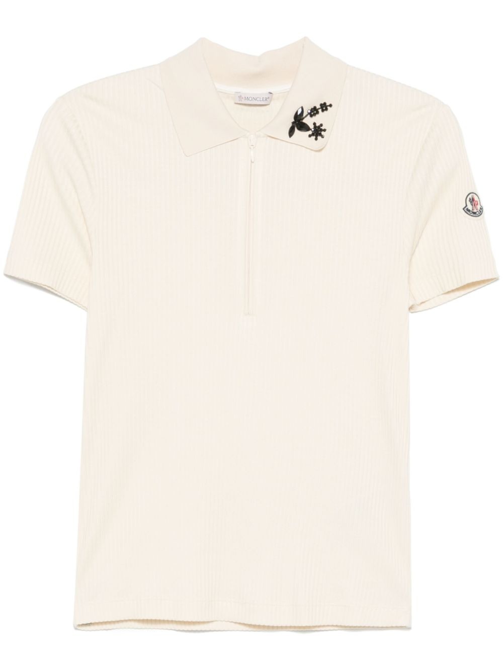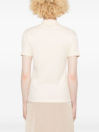 beaded polo top Highlights - Light beige - Short front zip fastening - Polo collar - Short sleeves - Logo patch at the sleeve Made in Italy Composition Cotton 54%, Viscose 46% SIZE & FIT Model measurements Height 5 ft 9 in(1.75 m) Bust/Chest 34.64 in(88 cm) Hips 36.61 in(93 cm) Waist 26.37 in(67 cm) FittingInformation Designed for a slim fit that sits just away from the body offering a close yet comfortable fit Made from a midweight non-stretch fabric, this piece offers minimal elasticity when worn