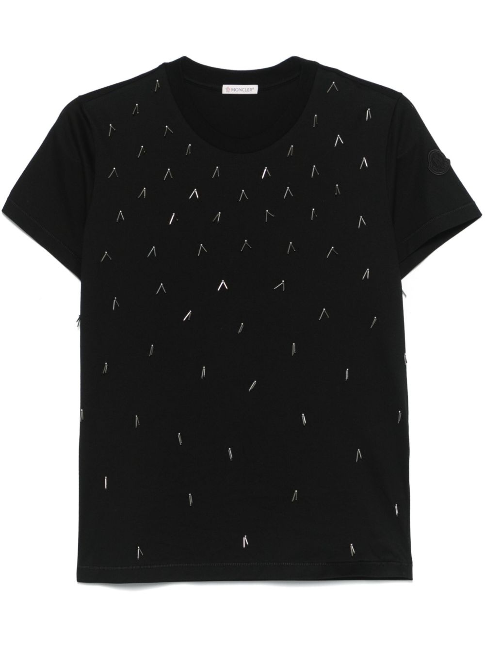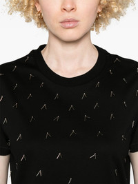 beaded T-shirt Highlights - Black - Crew neck - Short sleeves - Logo patch at the sleeve Made in Italy Composition Cotton 100% SIZE & FIT Model measurements Height 5 ft 9 in(1.75 m) Bust/Chest 34.64 in(88 cm) Hips 36.61 in(93 cm) Waist 26.37 in(67 cm) FittingInformation Designed for a relaxed fit, this piece allows for comfort and movement when worn Made from a midweight non-stretch fabric, this piece offers minimal elasticity when worn