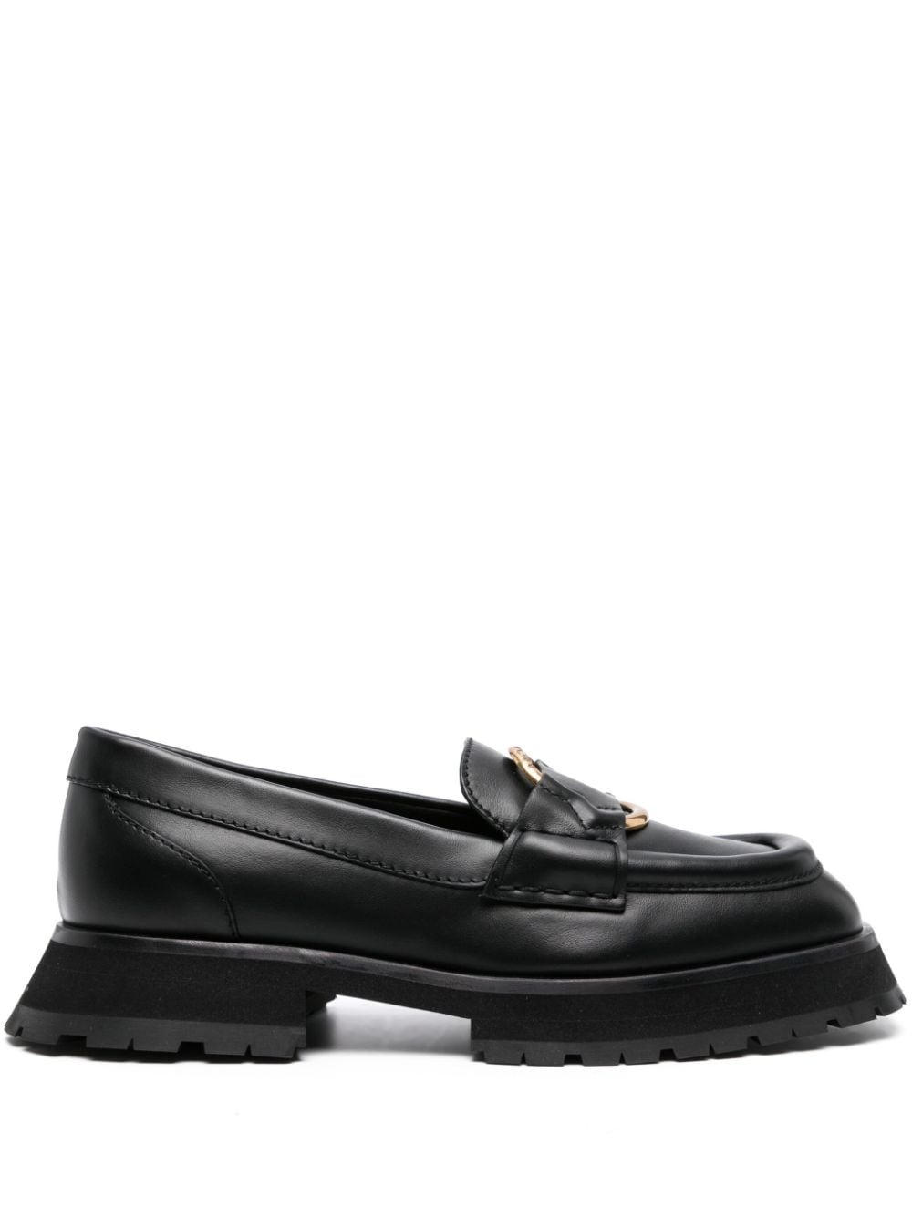Bell leather loafers Highlights - Black - Calf leather - Smooth grain - Ring hardware detailing - Engraved logo - Slip-on style - Square toe - Branded leather insole - Micro rubber midsole - Rubber outsole Made in Italy Composition Leather 100% SIZE & FIT Measurement HEEL 1.37 in(3.5 cm) Sole height 0.98 in(2.5 cm)