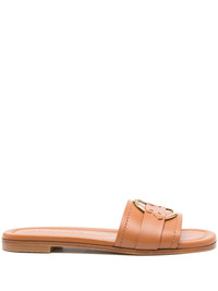 Bell leather slides Highlights - Camel brown - Calf leather - Grained texture - Open toe - Applique logo - Branded footbed - Low stacked heel - Leather outsole - Logo-engraved gold-tone hardware - Slip-on style - This piece comes complete with a protective dust bag. Made in Italy Composition Sole: Calf Leather 100%, Rubber 100% Lining: Calf Leather 100% Outer: Calf Leather 100% SIZE & FIT Measurement HEEL 0.78 in(2 cm) Sole height 0.39 in(1 cm)