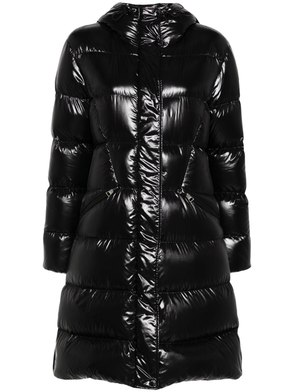 Bellevue coat Highlights - Black - Duck down - Padded design - Quilted - Glossy finish - Water-repellent - Front press-stud fastening - Front two-way zip fastening - Drawstring hood - Branded zip puller - Long sleeves - Elasticated cuffs - Logo patch at the sleeve - Two side zip-fastening pockets - Full lining Imported Composition Outer: Polyamide 100% Lining: Polyamide 100%, Down 90%, Feather 10% SIZE & FIT Model measurements Height 5 ft 10 in(1.77 m) Bust/Chest 29.92 in(76 cm) Hips 34.25 in(87 cm) Waist 23.62 in(60 cm) FittingInformation Designed for a slim fit that sits just away from the body offering a close yet comfortable fit The belt offers adjustability for fitted preferences Made from a padded non-stretch fabric, giving it no natural elasticity Washing instructions Machine Wash