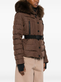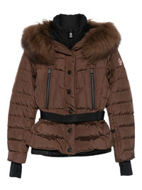 belted puffer jacket Highlights - Brown - Concealed zip fastening - Belted waist - Hood - Front zip pockets Imported Composition Outer: Polyamide 100%, Lamb Shearling 100% Lining: Polyamide 100%, Polyester 100%, Down 90%, Feather 10% SIZE & FIT Model measurements Height 5 ft 8 in(1.73 m) Bust/Chest 29.92 in(76 cm) Hips 33.07 in(84 cm) Waist 23.22 in(59 cm) Washing instructions Hand Wash