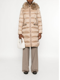 Boedic Hooded Shearling-Trimmed Long Down Jacket