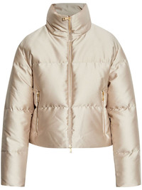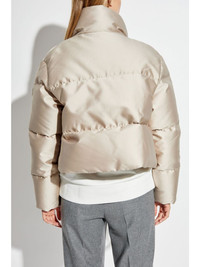Bonnelles jacket Highlights - Light beige - Satin finish - Feather down - Logo patch at the sleeve - Front zip fastening - Stand-up collar - Two side slit pockets Imported Composition Lining: Polyamide 100%, Down 90%, Feather 10% Outer: Polyamide 100% SIZE & FIT FittingInformation Designed to be unstructured, offering a loose fit throughout The internal drawstring at the hem allows for fitted preferences Made from a padded non-stretch fabric, giving it no natural elasticity