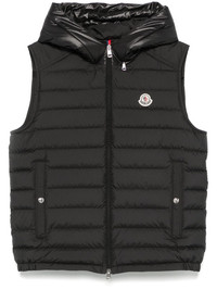 Bourget gilet Highlights - Black - Front two-way zip fastening - Classic hood - Two press-stud fastening side pockets - Logo patch at the chest Imported Composition Lining: Polyester 100%, Feather Down 100%, Goose Down 90% Outer: Polyester 100% SIZE & FIT Model measurements Height 6 ft 2 in(1.87 m) Bust/Chest 36.41 in(92.5 cm) Hips 35.43 in(90 cm) Waist 29.52 in(75 cm) FittingInformation Designed for a regular fit, allowing for a comfortably loose fit throughout the body The elasticated hem allows for movement and a comfortable fit Made from a padded non-stretch fabric, giving it no natural elasticity