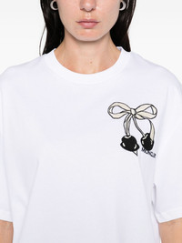 bow-embroidered T-shirt Highlights - White - Cherry motif - Bow detail - Short sleeves - Crew neck - Cotton Imported Composition Cotton 100% SIZE & FIT Model measurements Height 5 ft 10 in(1.78 m) Bust/Chest 33.46 in(85 cm) Hips 36.22 in(92 cm) Waist 23.22 in(59 cm) Washing instructions Machine Wash
