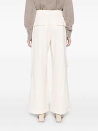 cargo trousers Highlights - Cream white - Stretch-cotton - Twill weave - Front press-stud and zip fastening - Belt loops - Two side patch pockets - Logo patch to the rear - Two rear flap pockets - Ruched detailing - Wide leg Made in Italy Composition Cotton 98%, Elastane 2% SIZE & FIT Model measurements Height 5 ft 9 in(1.75 m) Bust/Chest 31.88 in(81 cm) Hips 34.64 in(88 cm) Waist 24.01 in(61 cm) FittingInformation Designed with a wide-leg cut, these trousers allow for a close fit at the waist and offer a loose and roomy fit over the leg Made from a midweight non-stretch fabric