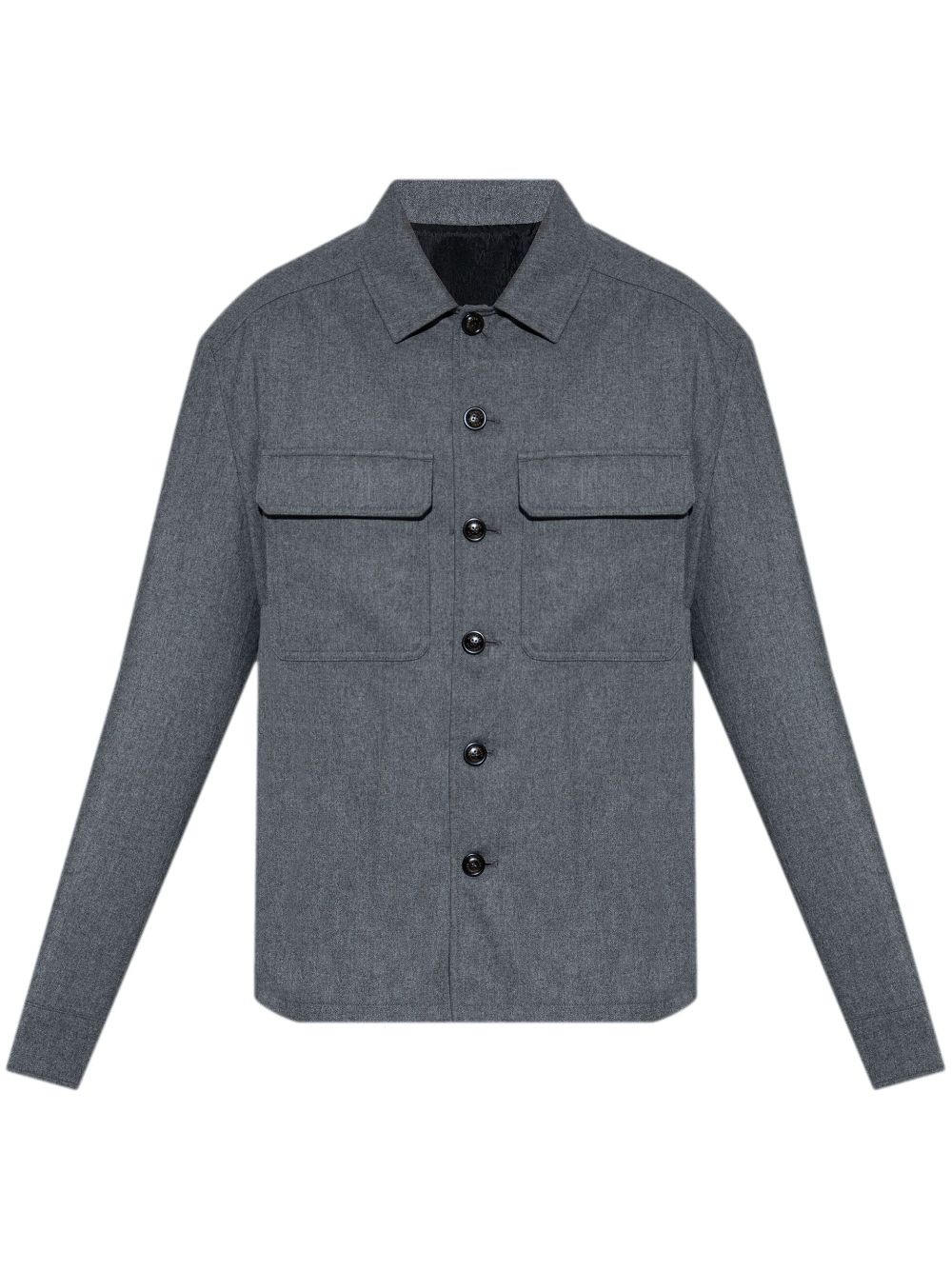 cashmere-blend shirt Highlights - Dark grey - Cashmere blend - Logo patch to the side - Pointed flat collar - Front button fastening - Long sleeves - Buttoned cuffs - Front flap pockets - Straight hem Imported Composition Outer: Polyamide 55%, Cashmere 45% Lining: Polyester 100%