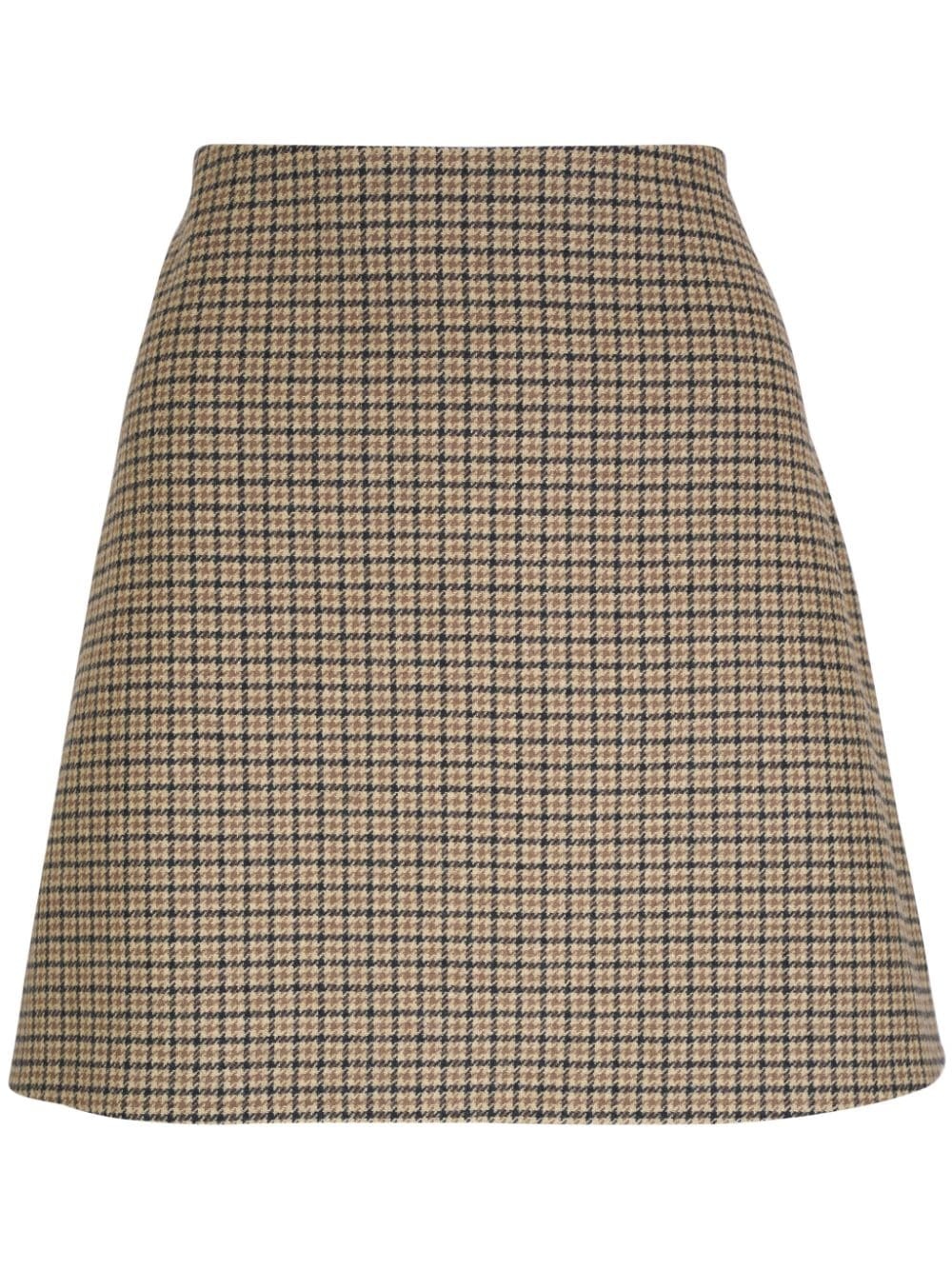 check-pattern straight skirt Highlights - Camel brown - Virgin wool blend - Check pattern - Side zip fastening - Straight hem - Thigh-length Made in United States Composition Virgin Wool 80%, Polyamide 20%