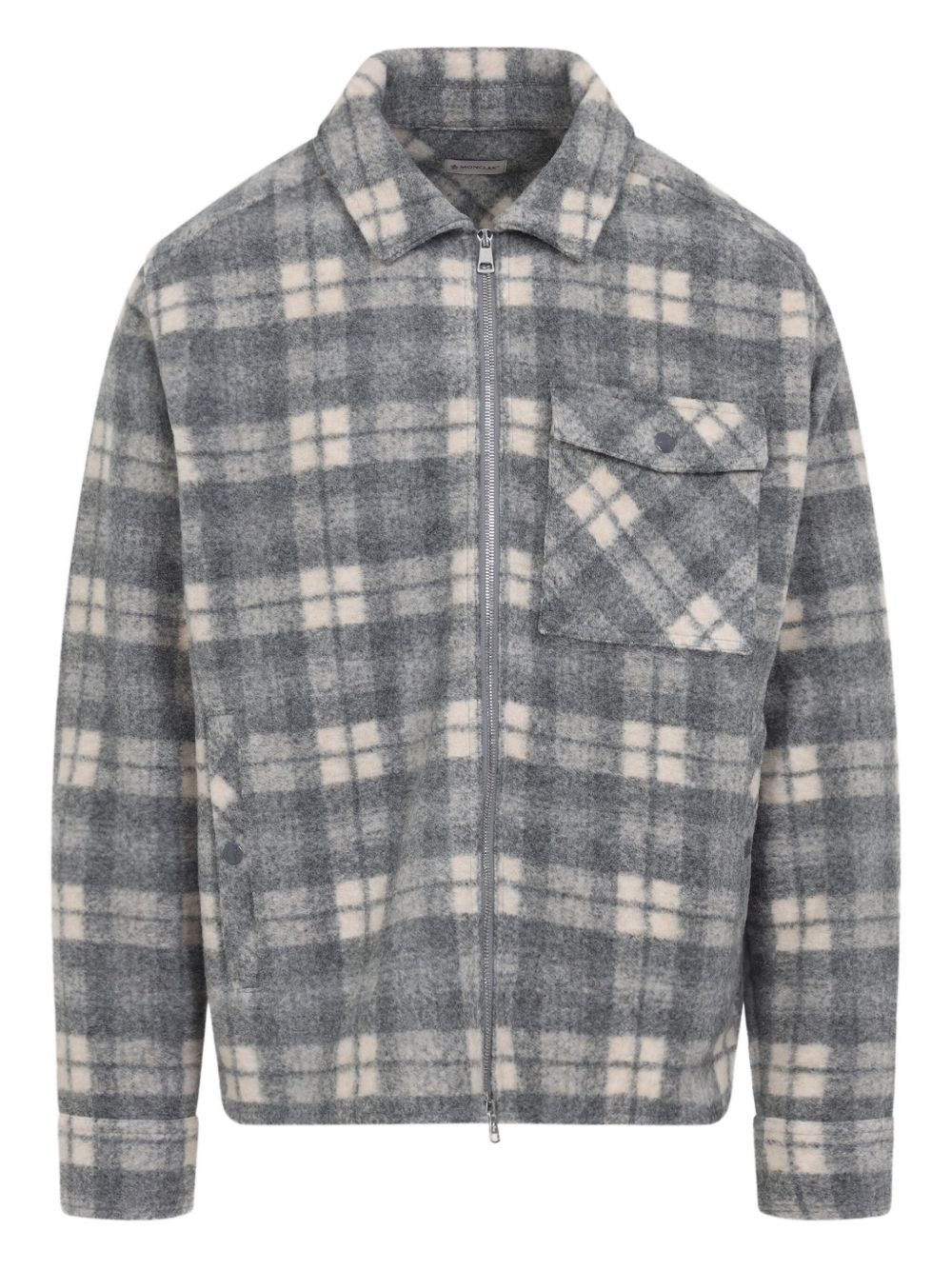 checked-print zip-up shirt jacket Highlights - Grey - Checked pattern - Zip fastening - Chest pocket - Point collar Imported Composition Polyester 82%, Wool 13%, Acrylic 5% Washing instructions Read Manufacturer Guidelines