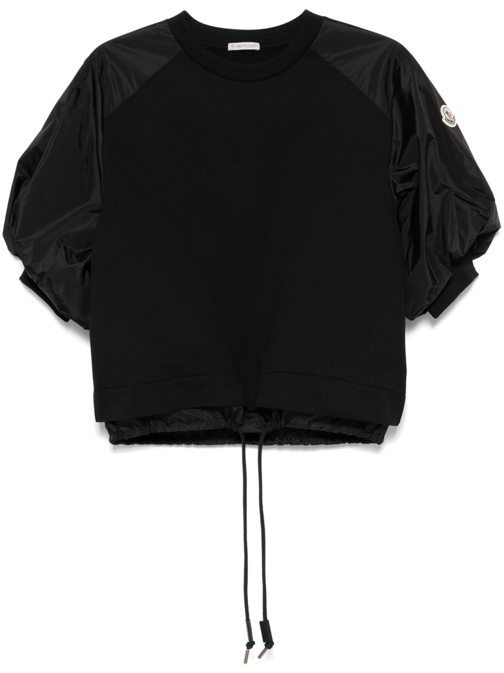 contrast-sleeves T-shirt Highlights - Black - Crew neck - Short puff sleeves - Drawstring hem Imported Composition Polyester 100%, Cotton 100%, Polyamide 100% SIZE & FIT Model measurements Height 5 ft 9 in(1.75 m) Bust/Chest 34.64 in(88 cm) Hips 36.61 in(93 cm) Waist 26.37 in(67 cm) FittingInformation Designed to be unstructured, offering a loose fit throughout The adjustable drawstring means that you can adjust this piece’s fit to suit your comfort and preference Made from a midweight non-stretch fabric, this piece offers minimal elasticity when worn