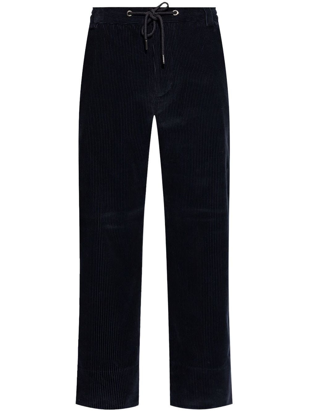 corduroy trousers Highlights - Blue - Cotton - Corduroy - Ribbed detailing - Elasticated drawstring waistband - Belt loops - Straight leg - Two rear flap pockets - Logo patch to the rear Imported Composition Cotton 100% SIZE & FIT FittingInformation Designed for a straight-leg, allowing for an unrestricted and comfortable fit over the leg The partially elasticated waistband offers increased movement and comfort at the waist Made from a midweight non-stretch fabric