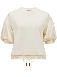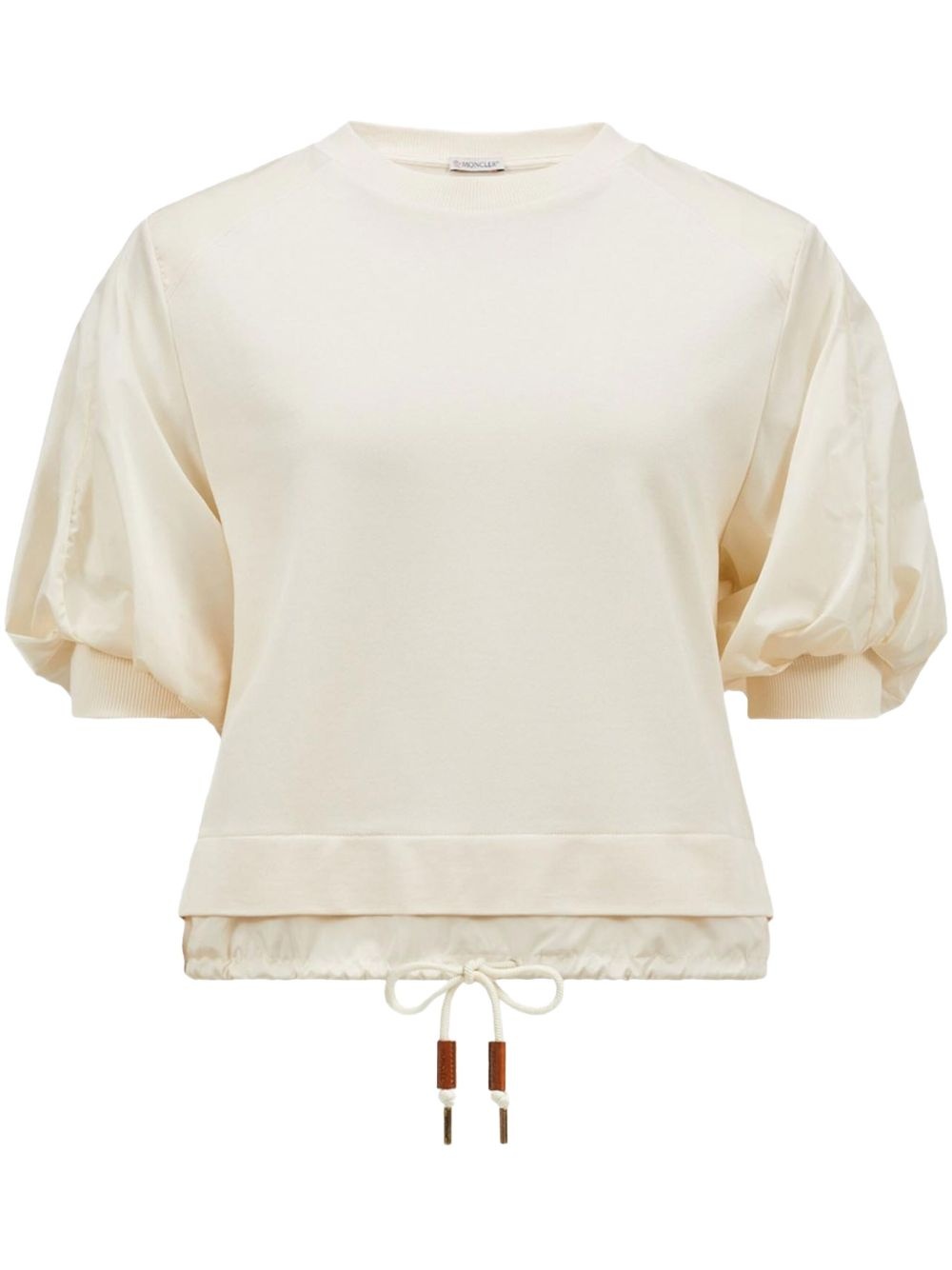 cotton T-shirt Highlights - White - Applique logo - Round neck - Short puff sleeves - Drawstring hem Imported Composition Outer: Polyamide 100%, Nylon 100%, Cotton 100% Lining: Polyester 100% SIZE & FIT FittingInformation Designed to be unstructured, offering a loose fit throughout The adjustable drawstring means that you can adjust this piece’s fit to suit your comfort and preference Made from a midweight non-stretch fabric, this piece offers minimal elasticity when worn
