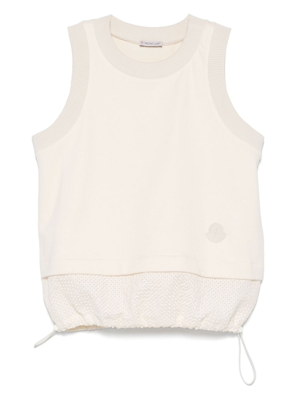 cotton tank top Highlights - Beige - Round neck - Sleeveless - Drawstring hem - Logo patch to the front Imported Composition Cotton 100% SIZE & FIT Model measurements Height 5 ft 10 in(1.78 m) Bust/Chest 31.49 in(80 cm) Hips 37 in(94 cm) Waist 23.62 in(60 cm) FittingInformation Designed for a relaxed fit, this piece allows for comfort and movement when worn The adjustable drawstring means that you can adjust this piece’s fit to suit your comfort and preference Made from a midweight non-stretch fabric, this piece offers minimal elasticity when worn