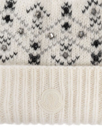crystal-embroidered beanie Highlights - White - Patterned - Crystals embellished - Ribbed brim - Logo patch Made in Italy Composition Alpaca 55%, Wool 23%, Polyamide 22% Washing instructions Dry Clean Only