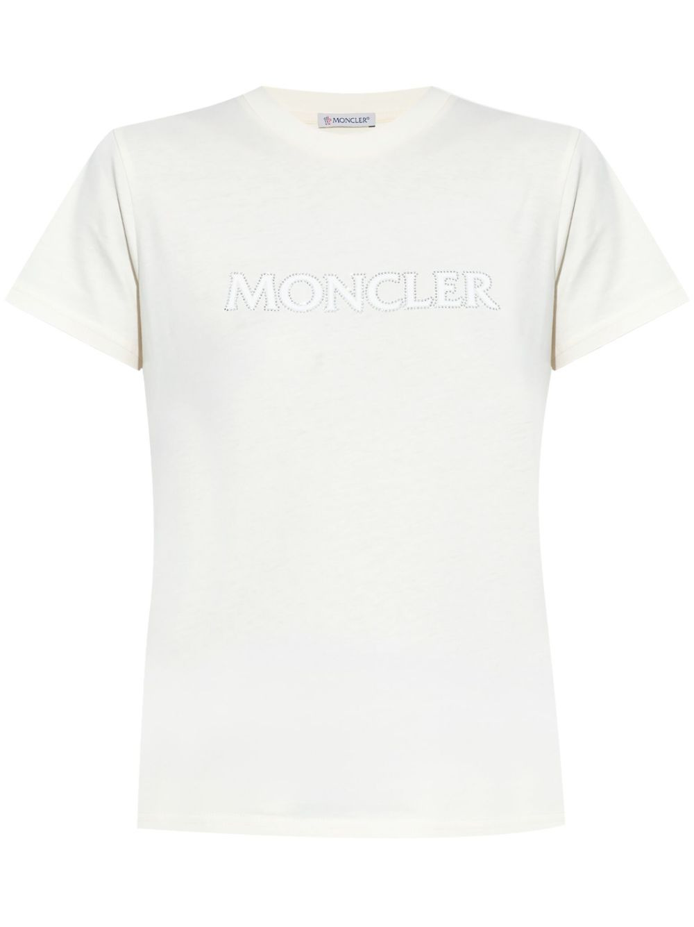 crystal-logo T-shirt Highlights - Cream beige - Cotton - Jersey texture - Crystal-logo embellishment to the front - Ribbed crew neck - Short sleeves - Logo patch at the sleeve - Straight hem Imported Composition Cotton 100% SIZE & FIT FittingInformation Designed for a slim fit that sits just away from the body offering a close yet comfortable fit Made from a midweight non-stretch fabric, this piece offers minimal elasticity when worn