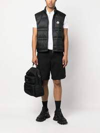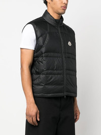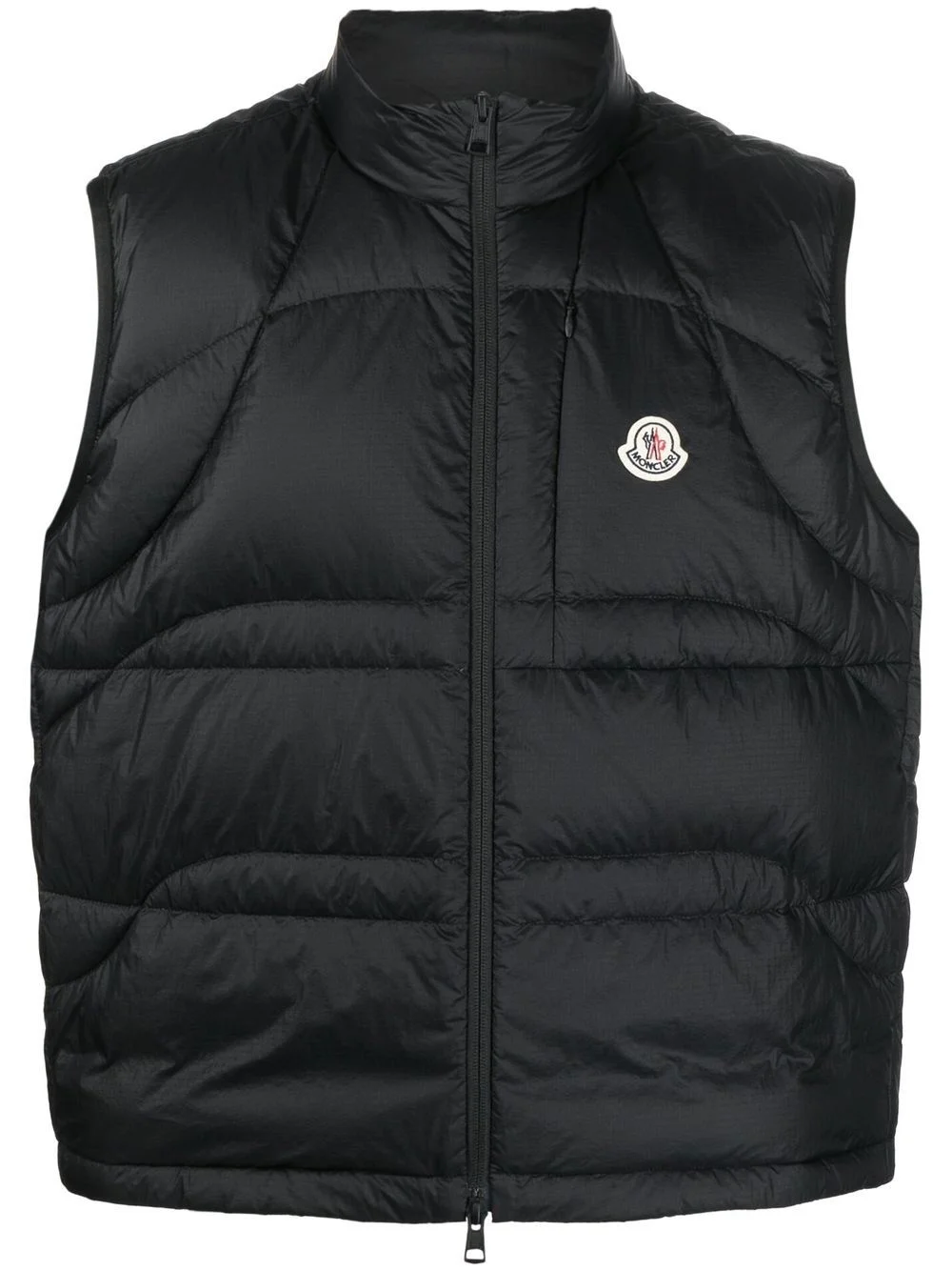 Cursa padded gilet Padded with goose down for insulating properties, this black iteration of the Cursa gilet is decorated with a logo patch at the chest - a nod to Moncler's focus on both performance and design. Imported Composition Outer: Polyamide 100% Lining: Goose Down 100%, Polyamide 100% SIZE & FIT Model measurements Height 6 ft 2 in(1.88 m) Bust/Chest 36.61 in(93 cm) Hips 35.82 in(91 cm) Waist 27.95 in(71 cm) FittingInformation This piece fits true to size. We recommend you get your regular size Cut for a loose fit Made with a lightweight non-stretch fabric Washing instructions Hand Wash