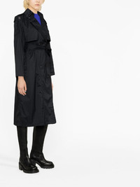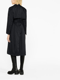 Deva belted trench coat Moncler's Deva trench coat offers a timeless aesthetic with functional elements for everyday use. Crafted from ultra-lightweight and water-repellent longue saison shell, it fastens with double-breasted buttons and a sash belt. Highlights - Black - Water-repellent finish - Lightweight construction - Logo patch at the sleeve - Double-breasted button fastening - Belted waist - Two side welt pockets - Long sleeves - Storm flap - Straight hem Imported Composition Outer: Polyamide 100% Lining: Cotton 100%, Polyamide 100% SIZE & FIT Model measurements Height 5 ft 10 in(1.79 m) Bust/Chest 31.49 in(80 cm) Hips 35.03 in(89 cm) Waist 23.62 in(60 cm) Measurement LENGTH 46.06 in(117 cm) SLEEVE LENGTH 22.44 in(57 cm) FittingInformation Designed to be unstructured, offering a loose fit throughout The tie fastening gives an adaptable and personalised fit Made from a lightweight non-stretch fabric This piece fits true to size – take your usual size Washing instructions Hand Wash