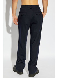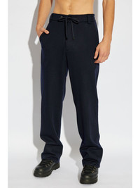 drawstring tapered trousers Highlights - Midnight blue - Wool blend - Knitted construction - Drawstring waist - Belt loops - Two side slit pockets - Two rear flap pockets - Straight leg Imported Composition Wool 80%, Polyamide 20% SIZE & FIT FittingInformation Designed for a straight-leg, allowing for an unrestricted and comfortable fit over the leg Adjust this piece’s waistband to your preference using the drawstring Made from a midweight non-stretch fabric
