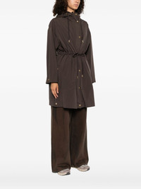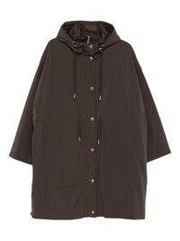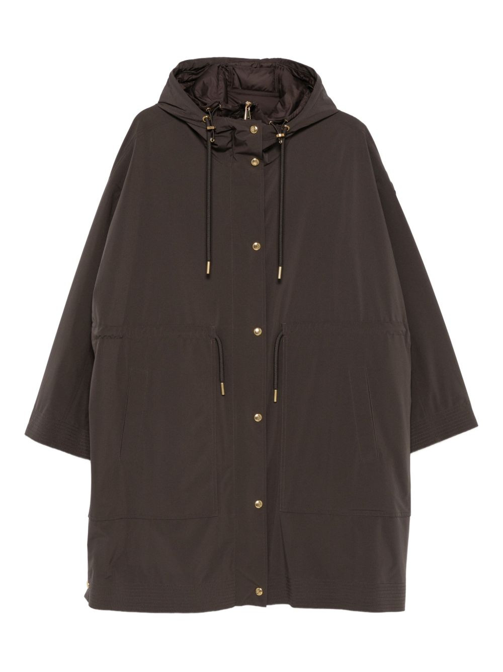 drawstring-waist hooded coat Highlights - Brown - Drawstring hood - Press-stud fastening - Long sleeves - Welt pockets Imported Composition Lining: Polyester 100%, Goose Down 90%, Goose Feather 10% Outer: Calf Leather 100%, Polyamide 100%, Polyester 100% SIZE & FIT Model measurements Height 5 ft 10 in(1.79 m) Bust/Chest 31.88 in(81 cm) Hips 35.43 in(90 cm) Waist 23.62 in(60 cm) Washing instructions Hand Wash