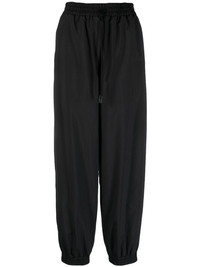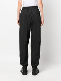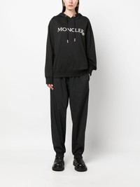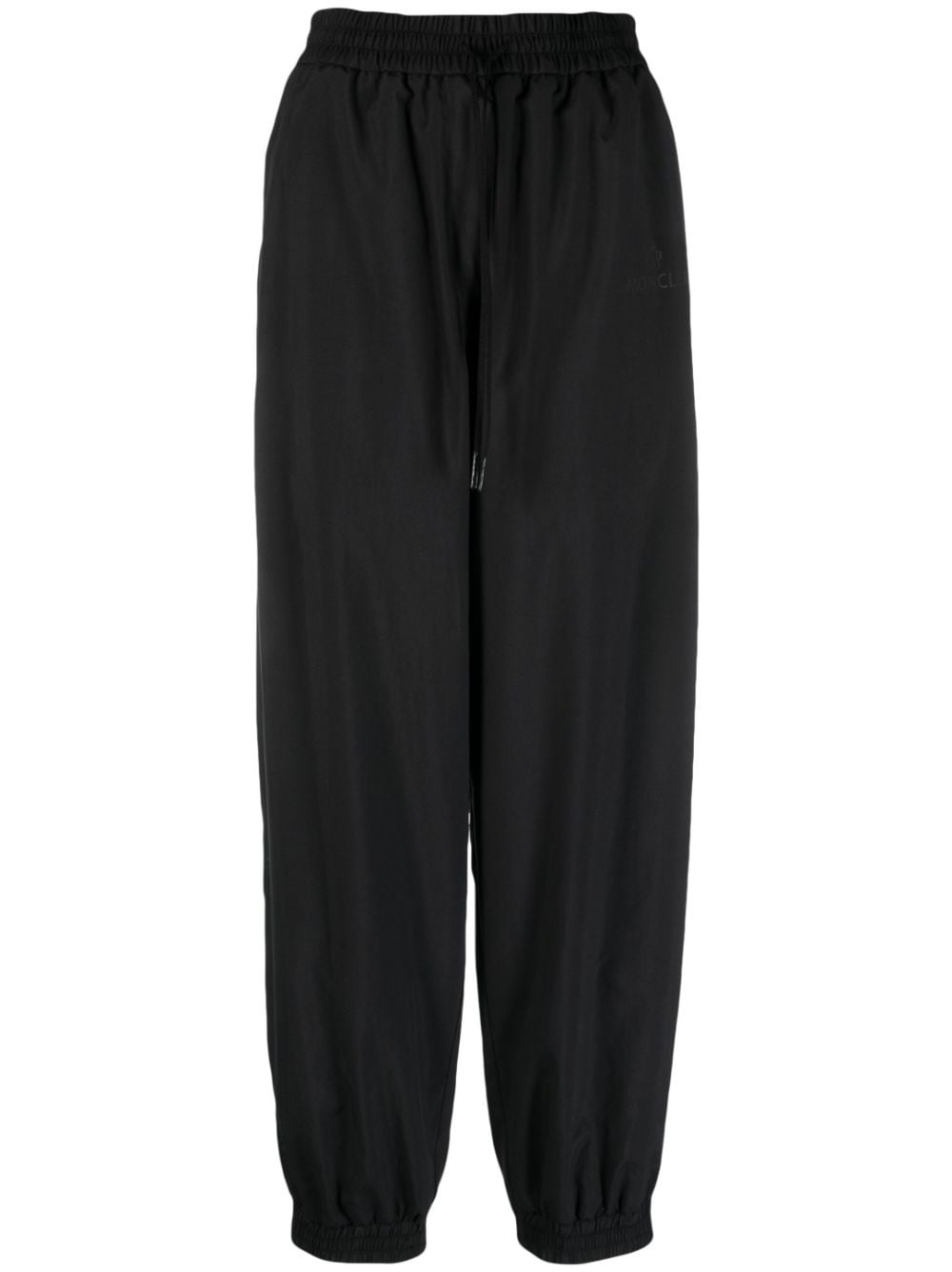 drawstring-waist track pants Moncler offers a sleek and sporty aesthetic with these track pants. Arriving in an all-black colourway, they are enhanced with a drawstring waist and elasticated cuffs while the tonal logo print on the thigh lends a subtly branded finish. Highlights - Black - Drawstring fastening waist - Slim cut - Two side slit pockets - Elasticated ankles Imported Composition Polyester 100% SIZE & FIT Model measurements Height 5 ft 10 in(1.78 m) Bust/Chest 33.46 in(85 cm) Hips 36.22 in(92 cm) Waist 23.22 in(59 cm) FittingInformation Designed for a relaxed tapered cut, these trousers allow for a close fit at the waist and offer a loose fit at the thighs, with a closer fit toward the ankles The elasticated waist allows for a comfortable fit Made from a midweight non-stretch fabric This piece fits true to size – take your usual size