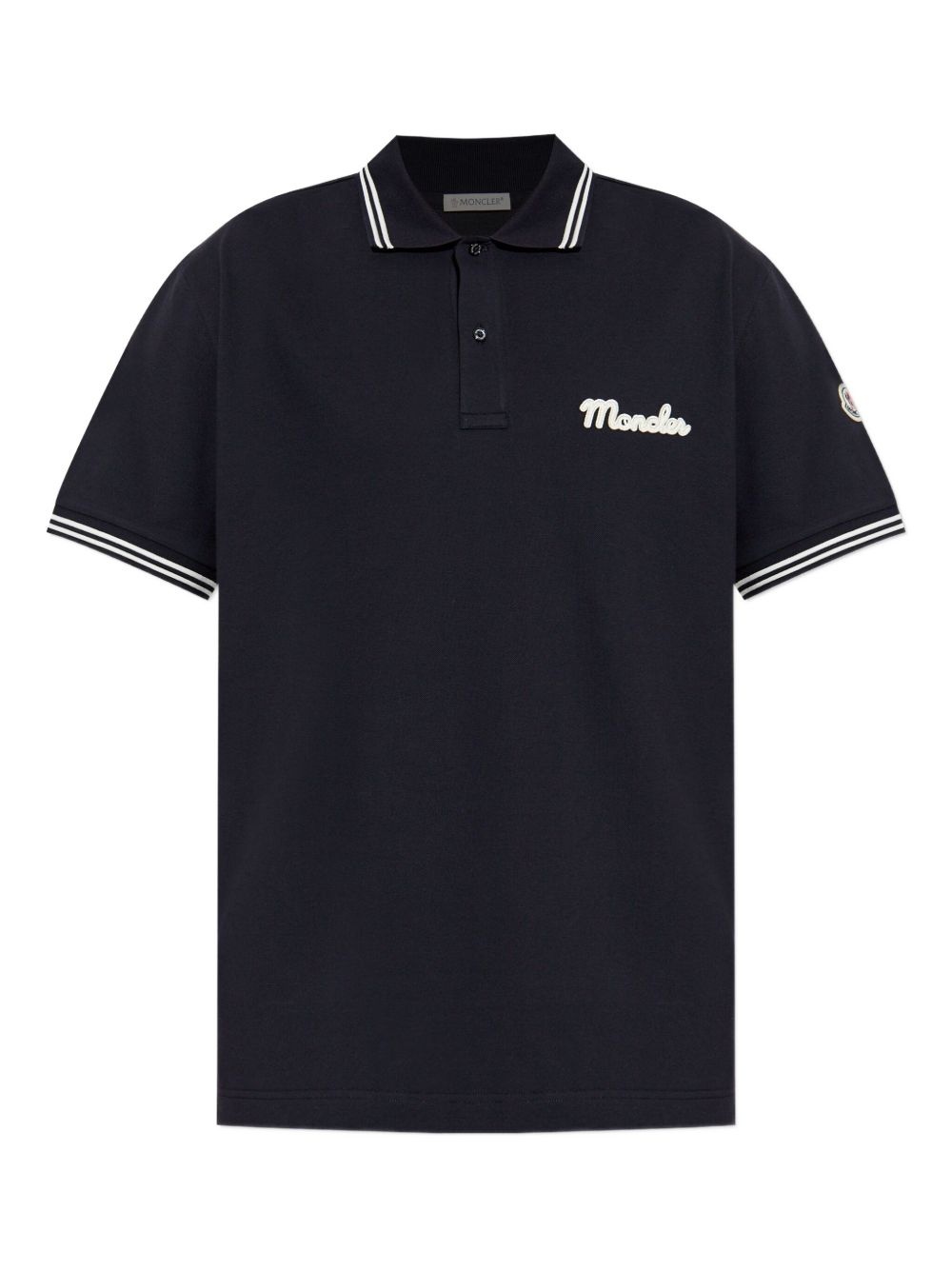 embroidered-logo polo shirt Highlights - Navy blue - Contrasting collar - Embroidered logo detail - Short sleeves - Ribbed cuffs Imported Composition Cotton 98%, Elastane 2%