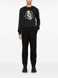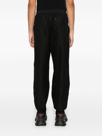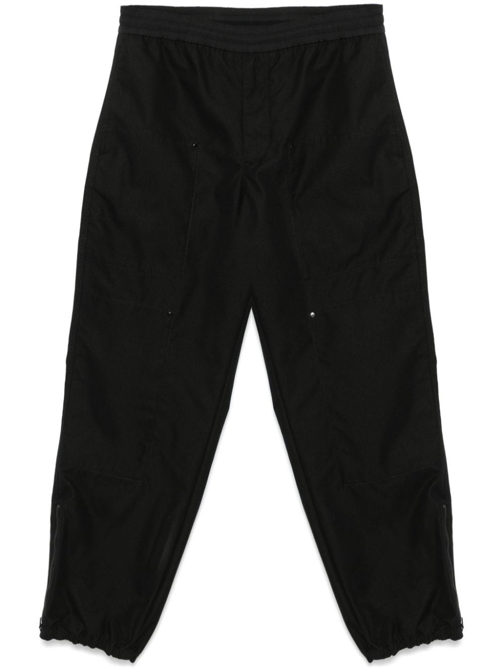 embroidered-logo trousers Highlights - Black - Cotton blend - Canvas - Embroidered logo to the rear - Elasticated waistband with internal drawstring - Front zip fastening - Two side inset pockets - Stud embellishment - Decorative stitching - Rear patch pocket - Zip-fastening side vents - Elasticated ankles Imported Composition Polyester 100%, Cotton 59%, Polyamide 41% SIZE & FIT Model measurements Height 6 ft 2 in(1.87 m) Bust/Chest 36.22 in(92 cm) Hips 35.43 in(90 cm) Waist 29.13 in(74 cm) FittingInformation Designed for a relaxed straight leg, allowing a comfortable and loose fit over the leg Adjust this piece’s waistband to your preference using the drawstring Made from a midweight non-stretch fabric