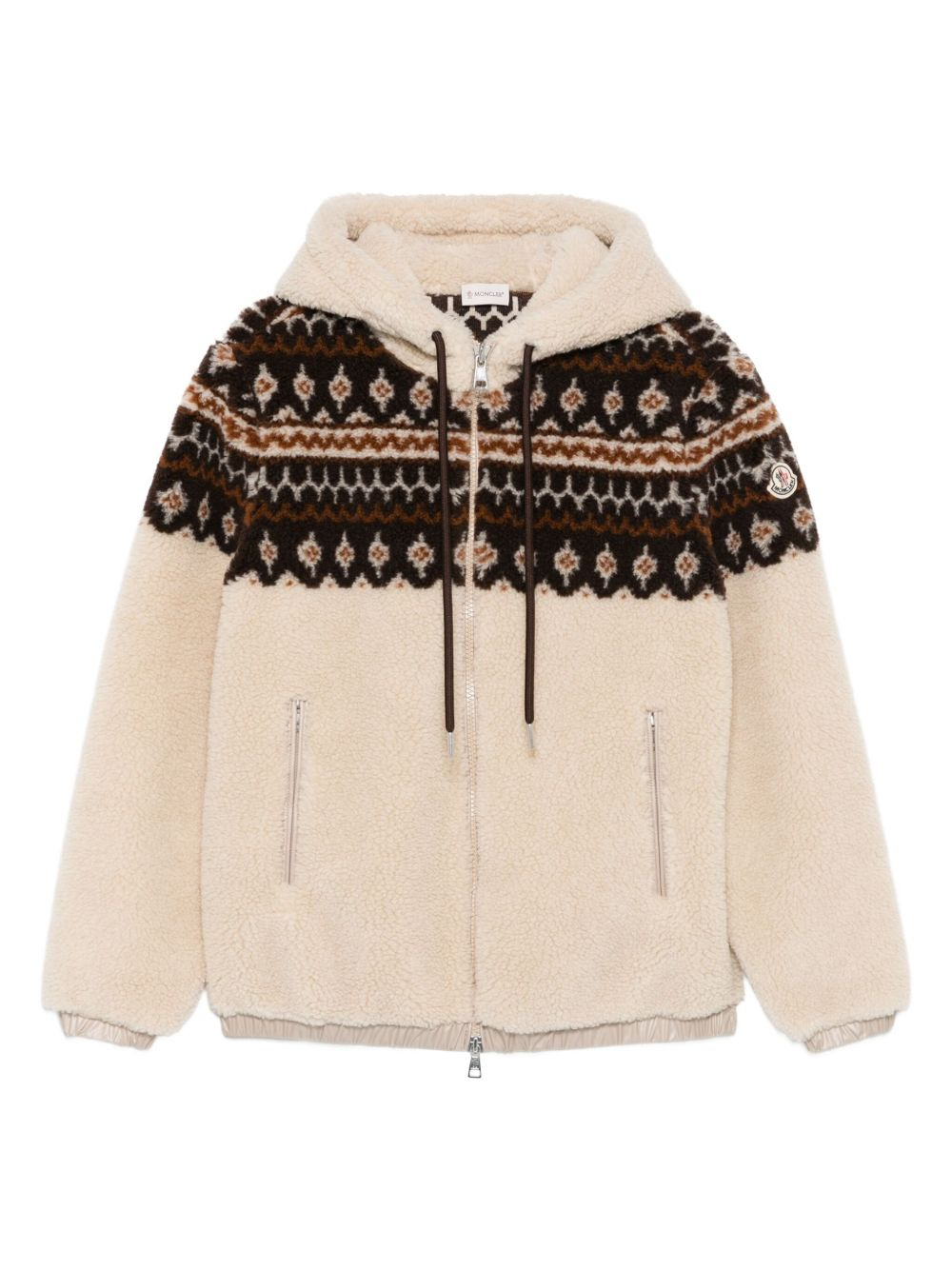 fair-isle hoodie Highlights - Medium beige - Fair-isle pattern - Zip fastening - Hooded neckline - Long sleeves - Two zip pockets Imported Composition Outer: Polyester 69%, Virgin Wool 31% Lining: Polyester 100% SIZE & FIT Model measurements Height 6 ft 0 in(1.84 m) Bust/Chest 35.82 in(91 cm) Hips 37 in(94 cm) Waist 28.34 in(72 cm) Washing instructions Read Manufacturer Guidelines
