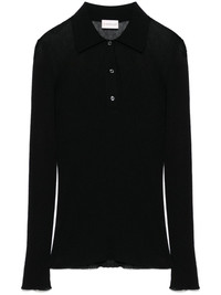 fine-ribbed polo top Highlights - Black - Front button placket - Logo patch at the sleeve - Polo collar - Long sleeves Imported Composition Cotton 82%, Polyamide 18% SIZE & FIT Model measurements Height 5 ft 10 in(1.78 m) Bust/Chest 31.49 in(80 cm) Hips 37 in(94 cm) Waist 23.62 in(60 cm) FittingInformation Designed for a slim fit that sits just away from the body offering a close yet comfortable fit Made with a midweight knit, this piece offers some stretch