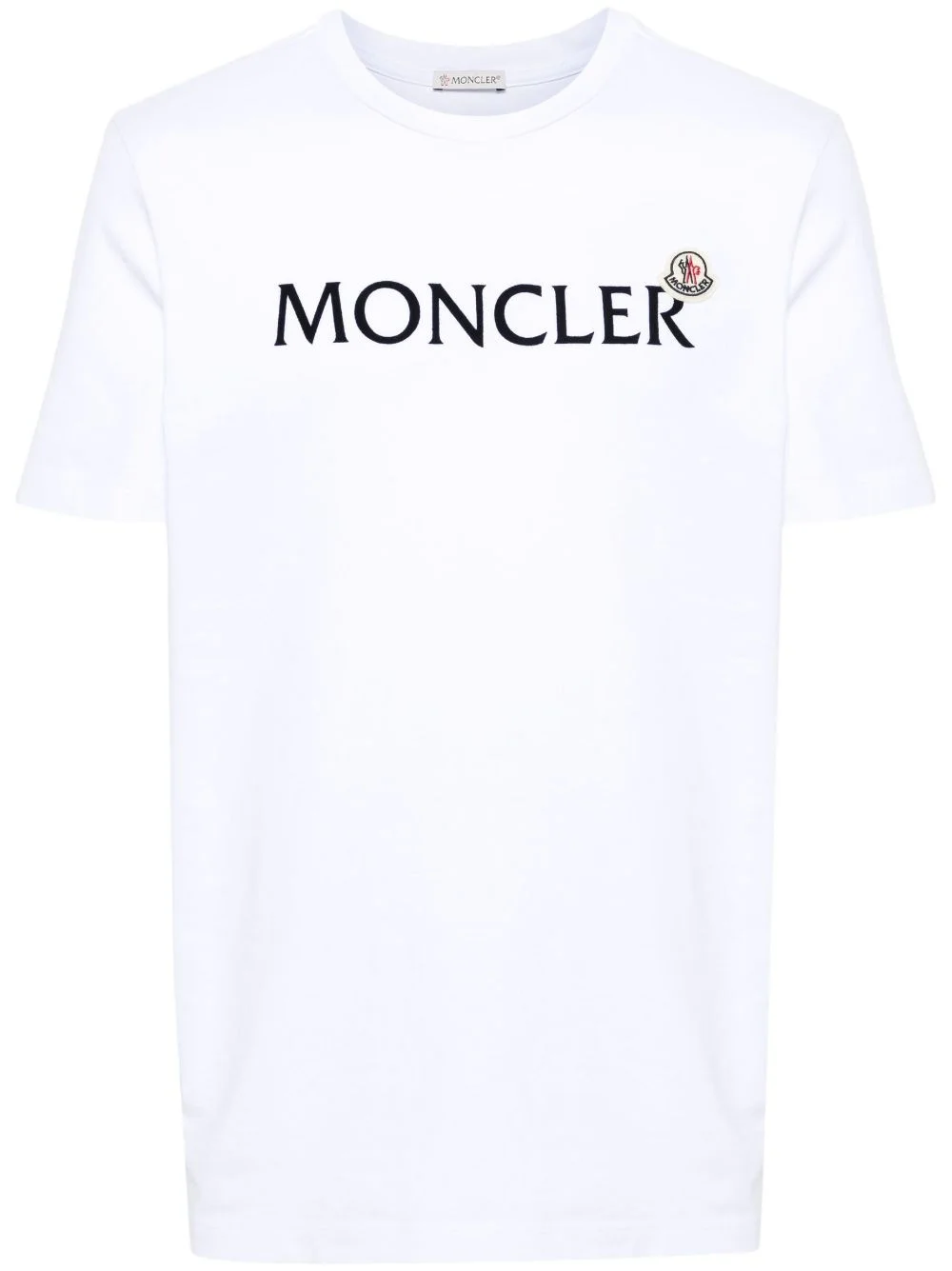 flocked-logo cotton T-shirt Highlights - White - Cotton - Jersey texture - Round neck - Flocked logo - Applique logo - Short sleeves - Straight hem Imported Composition Cotton 100% SIZE & FIT Model measurements Height 6 ft 2 in(1.87 m) Bust/Chest 36.41 in(92.5 cm) Hips 35.43 in(90 cm) Waist 29.52 in(75 cm) Measurement CHEST 40.15 in(102 cm) LENGTH 28.34 in(72 cm) FittingInformation Designed for a regular fit allowing for a comfortably loose fit throughout the body Made from a midweight non-stretch fabric, this piece offers minimal elasticity when worn This piece fits true to size – take your usual size Washing instructions Machine Wash
