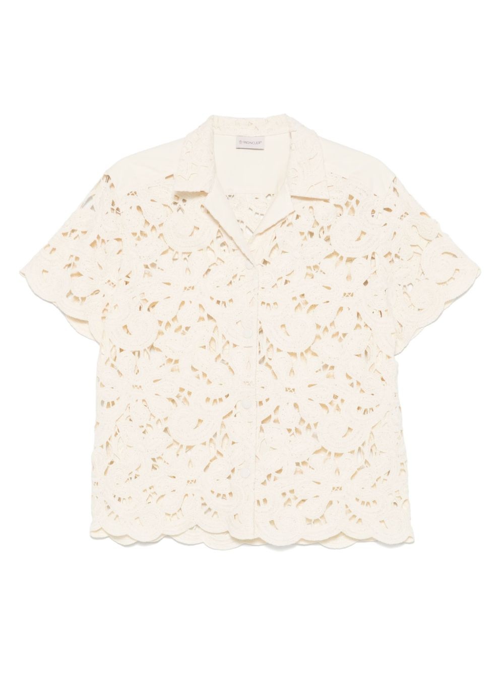 floral macrame shirt Highlights - Ecru - Front press-stud fastening - Camp collar - Short sleeves - Scallop hem Imported Composition Outer: Cotton 88%, Polyester 12% Lining: Cotton 100% SIZE & FIT Model measurements Height 5 ft 9 in(1.75 m) Bust/Chest 34.64 in(88 cm) Hips 36.61 in(93 cm) Waist 26.37 in(67 cm) FittingInformation Designed to be unstructured, offering a loose fit throughout Made from a midweight non-stretch fabric
