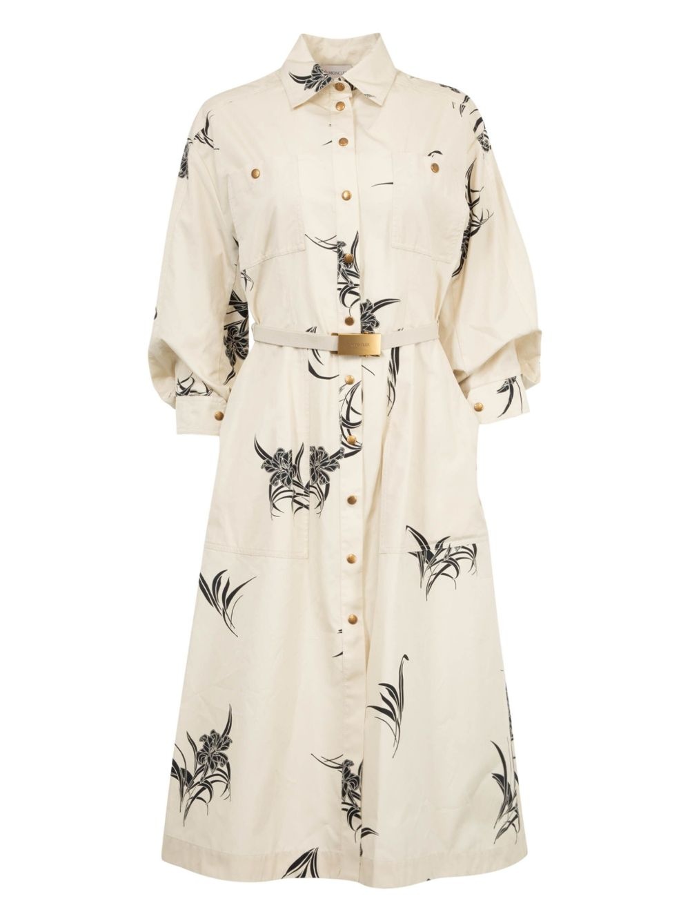 floral-print cotton dress Highlights - Light beige - Front press-stud fastening - Detachable and adjustable waist belt - Two chest patch pockets - Two side slash pockets Imported Composition Outer: Cotton 100% Lining: Cotton 100% SIZE & FIT Measurement SLEEVE LENGTH 16.14 in(41 cm) HIPS 41.33 in(105 cm) LENGTH 44.09 in(112 cm) WAIST 29.13 in(74 cm)