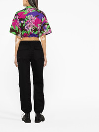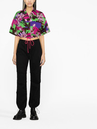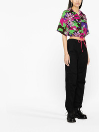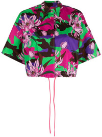 floral-print cropped shirt This shirt from Moncler speaks to the label’s penchant for functional detailing and punchy patterns. Cut with wide sleeves and a drawstring hem for a custom fit, it’s saturated with a camouflage print in hues of brown, purple and green, juxtaposed with blooming florals. Highlights - Black/multicolour - Cotton - All-over floral print - Straight-point collar - Concealed press-stud fastening - Drop shoulder - Short sleeves - Drawstring hem Made in Italy Composition Cotton 100% SIZE & FIT Model measurements Height 5 ft 10 in(1.77 m) Bust/Chest 32.67 in(83 cm) Hips 35.43 in(90 cm) Waist 23.62 in(60 cm) Measurement LENGTH 19.29 in(49 cm) BUST 43.3 in(110 cm) FittingInformation Designed to be unstructured, offering a loose fit throughout The adjustable drawstring means that you can adjust this piece’s fit to suit your comfort and preference Made from a midweight non-stretch fabric This piece fits true to size – take your usual size Washing instructions Machine Wash