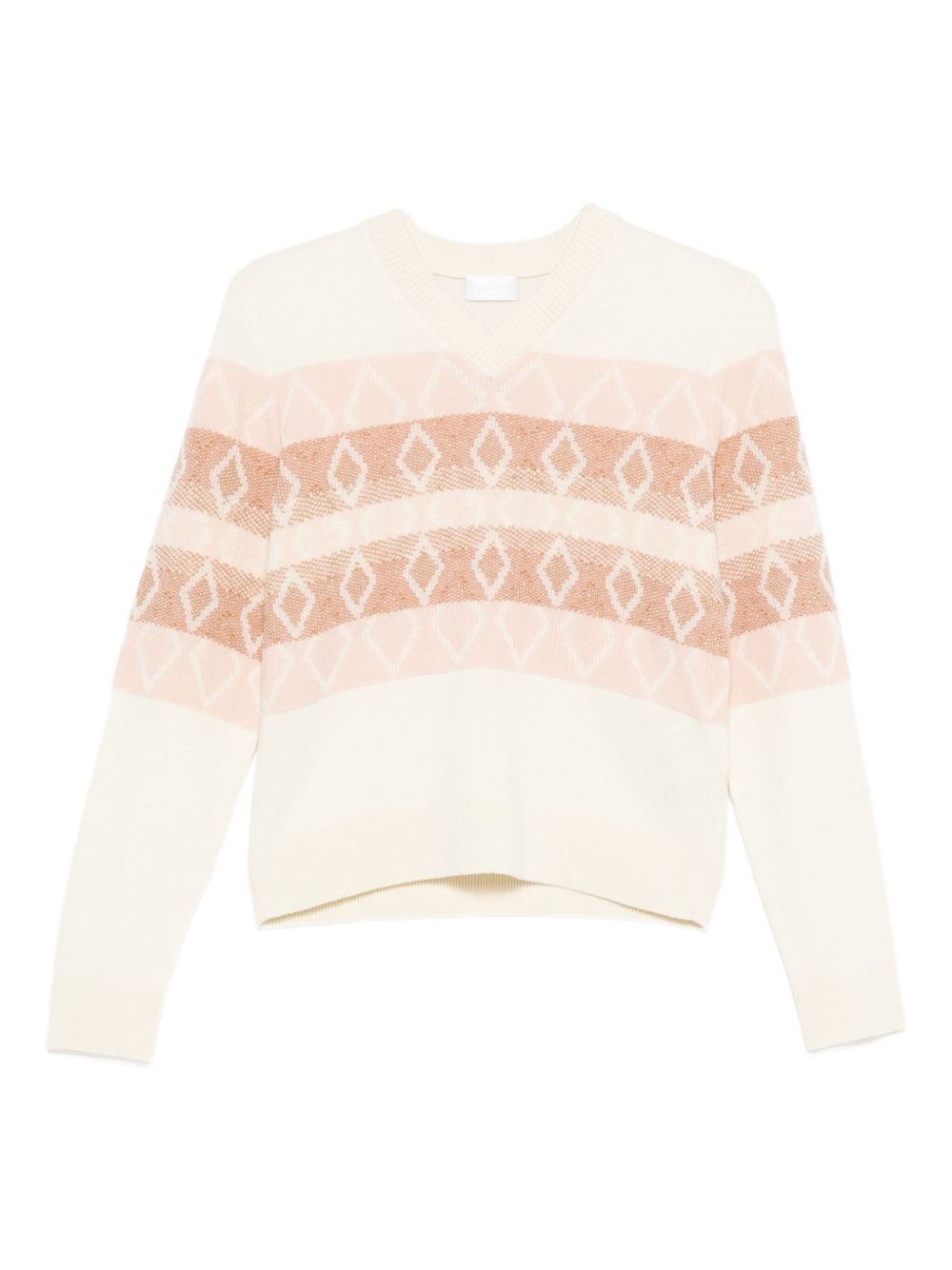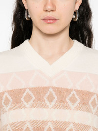geometric-pattern wool sweater Highlights Imported Composition Virgin Wool 100% SIZE & FIT Model measurements Height 5 ft 9 in(1.75 m) Bust/Chest 32.67 in(83 cm) Hips 36.22 in(92 cm) Waist 24.8 in(63 cm)