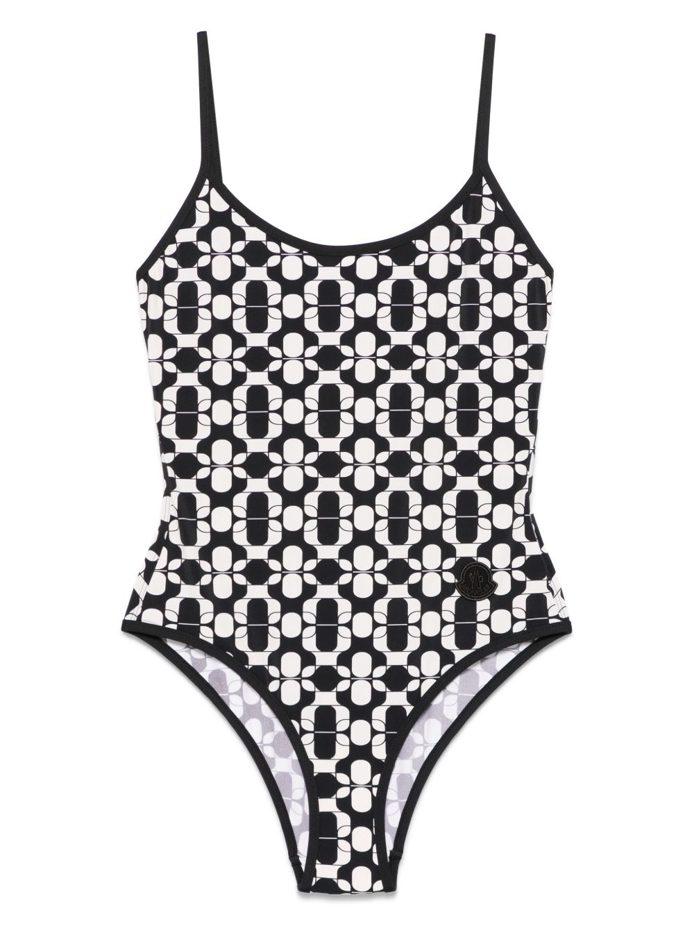 geometric-print swimsuit Highlights - Black - Scoop neck - Spaghetti straps - Low back - Be mindful to try on swimwear over your own garments. Made in Italy Composition Polyamide 71%, Elastane 29%