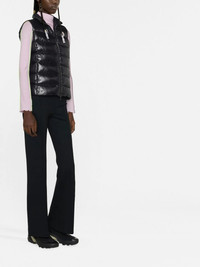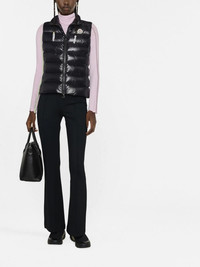 Ghany padded down gilet Renowned for creating luxurious outerwear, Italian fashion house Moncler takes inspiration from the 80s instantly recognisable silhouettes with this black Ghany gilet. This piece is detailed with feather-down padding and finished with the brand's iconic logo patch for a signature touch. Highlights - Black - Feather down - Logo patch at the chest - High neck - Front zip fastening - Sleeveless - Two side slit pockets Imported Composition Outer: Polyamide 100% Lining: Polyamide 100% SIZE & FIT Model measurements Height 5 ft 10 in(1.79 m) Bust/Chest 31.1 in(79 cm) Hips 35.03 in(89 cm) Waist 24.01 in(61 cm) Measurement Shoulder Width 13.77 in(35 cm) LENGTH 20.47 in(52 cm) WAIST 31.49 in(80 cm) BUST 33.85 in(86 cm) FittingInformation Designed for a slim fit that sits just away from the body offering a close yet comfortable fit Made from a padded non-stretch fabric, giving it no natural elasticity This piece fits true to size – take your usual size Washing instructions Machine Wash