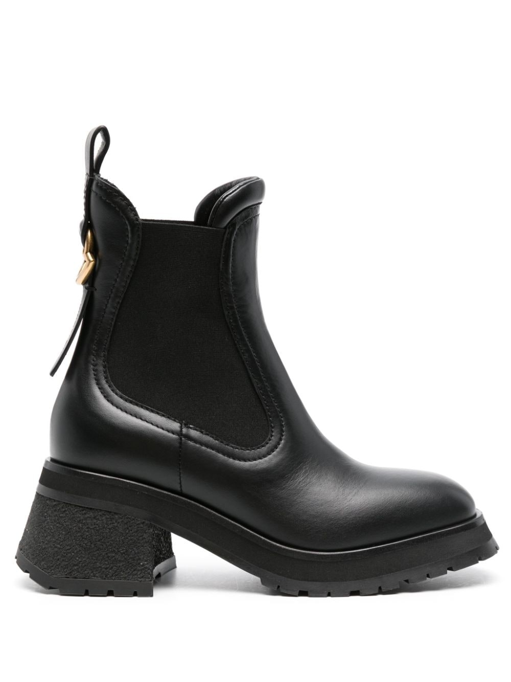 Gigi 70mm leather Chelsea boots The Gigi boots are Moncler's take on the classic Chelsea style. The flared heel assures a fresh feel, while logo-shaped hardware on the back adds a branded finishing touch. Highlights - Black - Calf leather - Smooth grain - Gold-tone logo plaque to the rear - Square toe - Elasticated side panels - Pull-tab at the heel - Branded footbed - 70mm mid block heel - Ridged rubber sole - Ankle-length - Slip-on style Made in Italy Composition Leather 100% SIZE & FIT Measurement CIRCUMFERENCE 10.62 in(27 cm) HEEL 2.75 in(7 cm) HEIGHT 5.9 in(15 cm) Sole height 0.98 in(2.5 cm)