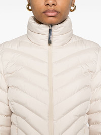 Grange jacket Highlights - Light beige - Front two-way zip fastening - Two side zip-fastening pockets - Chevron quilting - High neck Imported Composition Lining: Polyester 100%, Goose Down 90%, Goose Feather 10% Outer: Polyester 100% SIZE & FIT Model measurements Height 5 ft 10 in(1.78 m) Bust/Chest 32.67 in(83 cm) Hips 35.43 in(90 cm) Waist 23.22 in(59 cm) FittingInformation Designed for a slim fit that sits just away from the body offering a close yet comfortable fit Made from a quilted non-stretch fabric, giving it no natural elasticity Washing instructions Hand Wash
