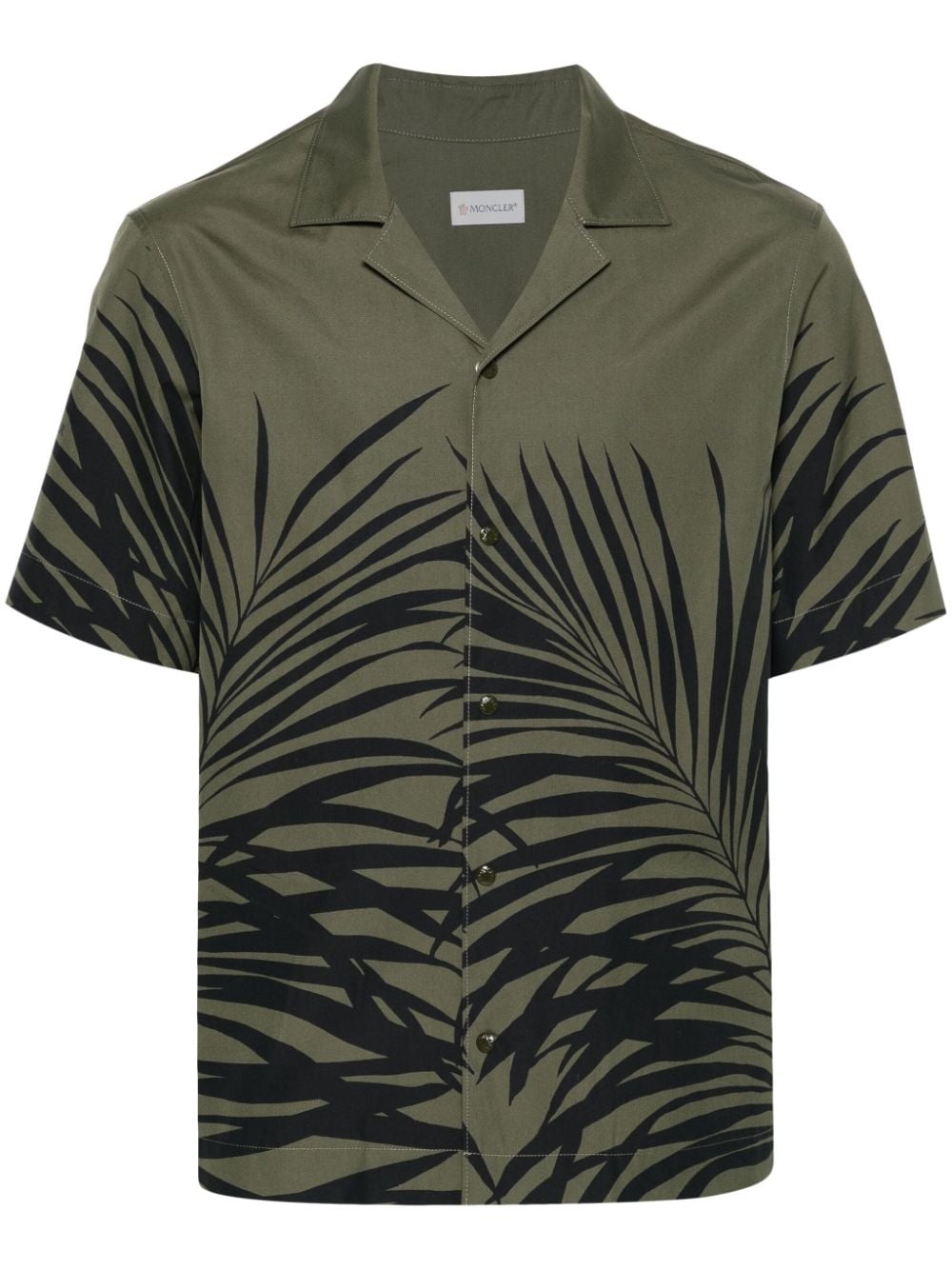graphic-print cotton shirt Crafted from lightweight cotton poplin in khaki and black tones, this short-sleeved shirt from Moncler is decorated with an all-over tropical leaf print — a motif inspired by Californian surf shacks. Highlights - Khaki/black - Cotton - Poplin texture - All-over graphic print - Classic collar - Short sleeves with applique logo - Straight hem - Front button fastening Imported Composition Cotton 100% SIZE & FIT Model measurements Height 6 ft 2 in(1.87 m) Bust/Chest 38.18 in(97 cm) Hips 36.61 in(93 cm) Waist 29.13 in(74 cm) FittingInformation Designed for a relaxed fit, this piece allows for comfort and movement when worn Made from a midweight non-stretch fabric This piece fits true to size – take your usual size