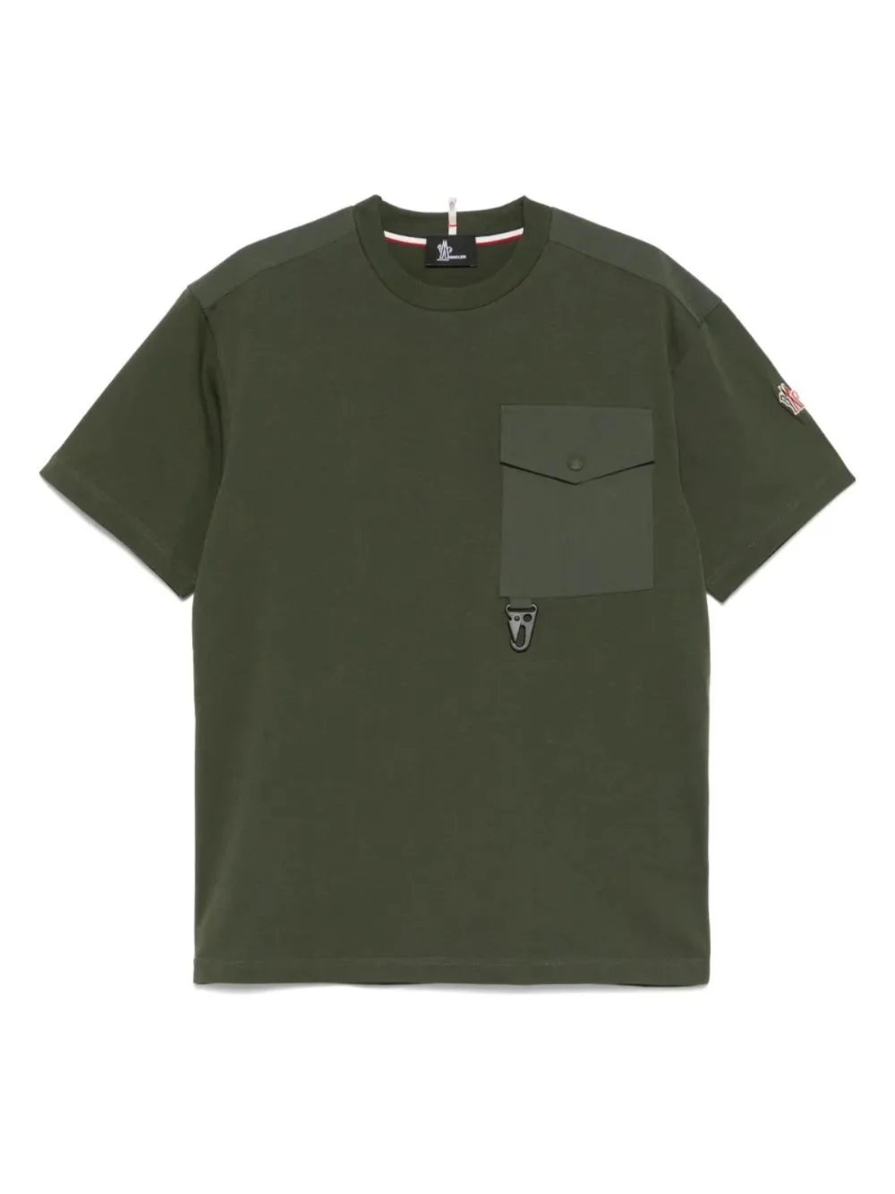 cotton T-shirt Highlights - Olive green - Cotton - Lightweight jersey - Ribbed trim - Crew neck - Short sleeves - Raised logo detail - Front flap pocket - Straight hem Imported Composition Cotton 100%, Polyester 100% Washing instructions Read Manufacturer Guidelines
