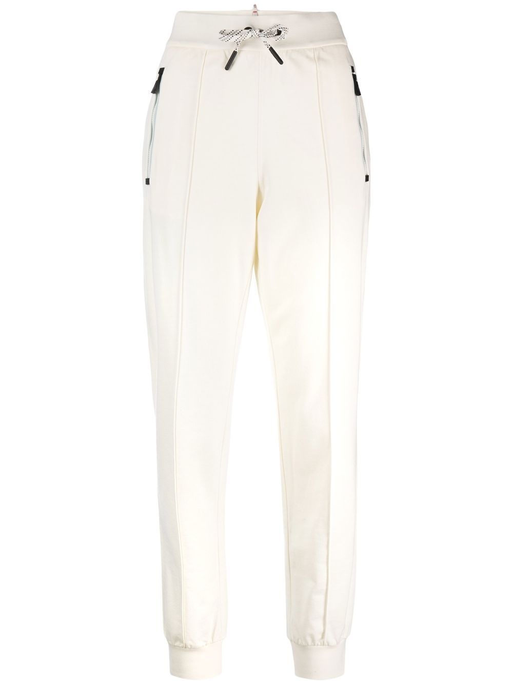 drawstring-waistband cotton track pants cream white cotton elasticated drawstring waistband two side zip-fastening pockets ribbed ankles Imported Composition Cotton 100% SIZE & FIT Model measurements Height 5 ft 10 in(1.77 m) Bust/Chest 32.67 in(83 cm) Hips 35.43 in(90 cm) Waist 23.62 in(60 cm) FittingInformation This piece fits true to size. We recommend you get your regular size Cut for a slim fit Made with a mid-weight fabric Measurement FRONT RISE 12 in(30.5 cm) INSIDE LEG 27.51 in(69.9 cm) BACK RISE 12.99 in(33 cm) HIPS 32.99 in(83.8 cm) Hem Width 10 in(25.4 cm) WAIST 27.99 in(71.1 cm) Washing instructions Machine Wash
