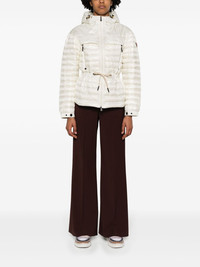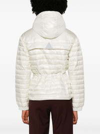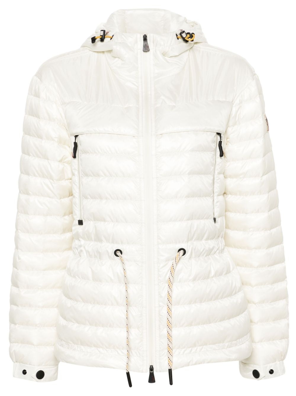 Eibing hooded down jacket Highlights - Ivory white - Feather down - Quilted - Ripstop texture - Logo patch at the sleeve - High neck - Drawstring hood - Front two-way zip fastening - Long sleeves - Elasticated press-stud fastening cuffs - Drawstring waist - Two zip-fastening chest pockets - Straight hem - Full lining Imported Composition Outer: Polyamide 100% Lining: Polyamide 100%, Polyester 100%, Feather Down 100% SIZE & FIT Model measurements Height 5 ft 10 in(1.77 m) Bust/Chest 33.07 in(84 cm) Hips 37 in(94 cm) Waist 24.8 in(63 cm) FittingInformation Designed to be loose and relaxed, this performance jacket comfortably allows for high-level movement The adjustable drawstring means that you can adjust this piece’s fit to suit your comfort and preference Made from a padded non-stretch fabric, giving it no natural elasticity This piece fits true to size – take your usual size