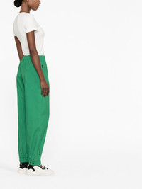 elasticated track pants forest green elasticated waistband two diagonal pockets to the sides elasticated cuffs tapered leg Imported Composition Polyester 100% SIZE & FIT Model measurements Height 5 ft 10 in(1.77 m) Bust/Chest 31.49 in(80 cm) Hips 33.85 in(86 cm) Waist 22.44 in(57 cm) FittingInformation This piece fits true to size. We recommend you get your regular size Designed to be fitted at the waist and hips, loose over the leg Made with a mid-weight non-stretch fabric Washing instructions Machine Wash