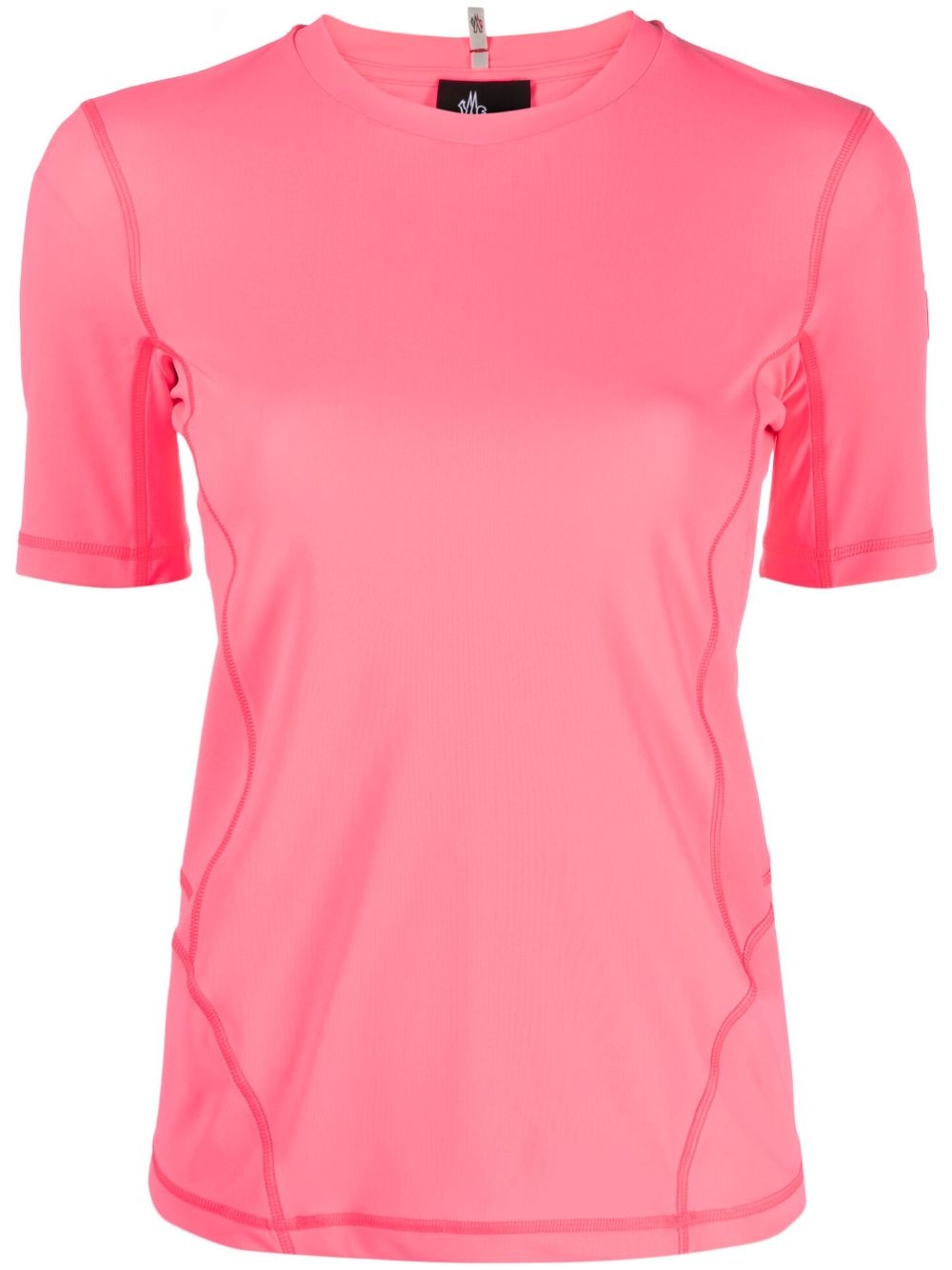embossed-logo T-shirt Part of the Moncler Grenoble Day-namic collection, this T-shirt is imagined in a bright pink hue and crafted from technical Sensitive® Fabrics tricot for a breathable feel. Highlights - Fluorescent pink - Stretch-design - Embossed logo to the rear - Round neck - Short sleeves - Straight hem Imported Composition Polyester 74%, Elastane 26% SIZE & FIT Model measurements Height 5 ft 11 in(1.8 m) Bust/Chest 31.49 in(80 cm) Hips 35.82 in(91 cm) Waist 24.8 in(63 cm) FittingInformation Designed for a slim fit that sits just away from the body offering a close yet comfortable fit Made from a midweight stretch fabric, this piece offers elasticity and flexibility when worn This piece fits true to size – take your usual size Washing instructions Machine Wash