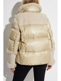 Esquel puffer jacket Highlights - Beige - Down-feather filling - Shearling trim - Front press-stud and zip fastening - High neck - Long sleeves - Applique logo - Two front patch pockets - Straight hem Made in Italy Composition Outer: Polyamide 100%, Sheep Skin/Shearling 100% Lining: Polyester 100%, Down 90%, Feather 10% Washing instructions Read Manufacturer Guidelines